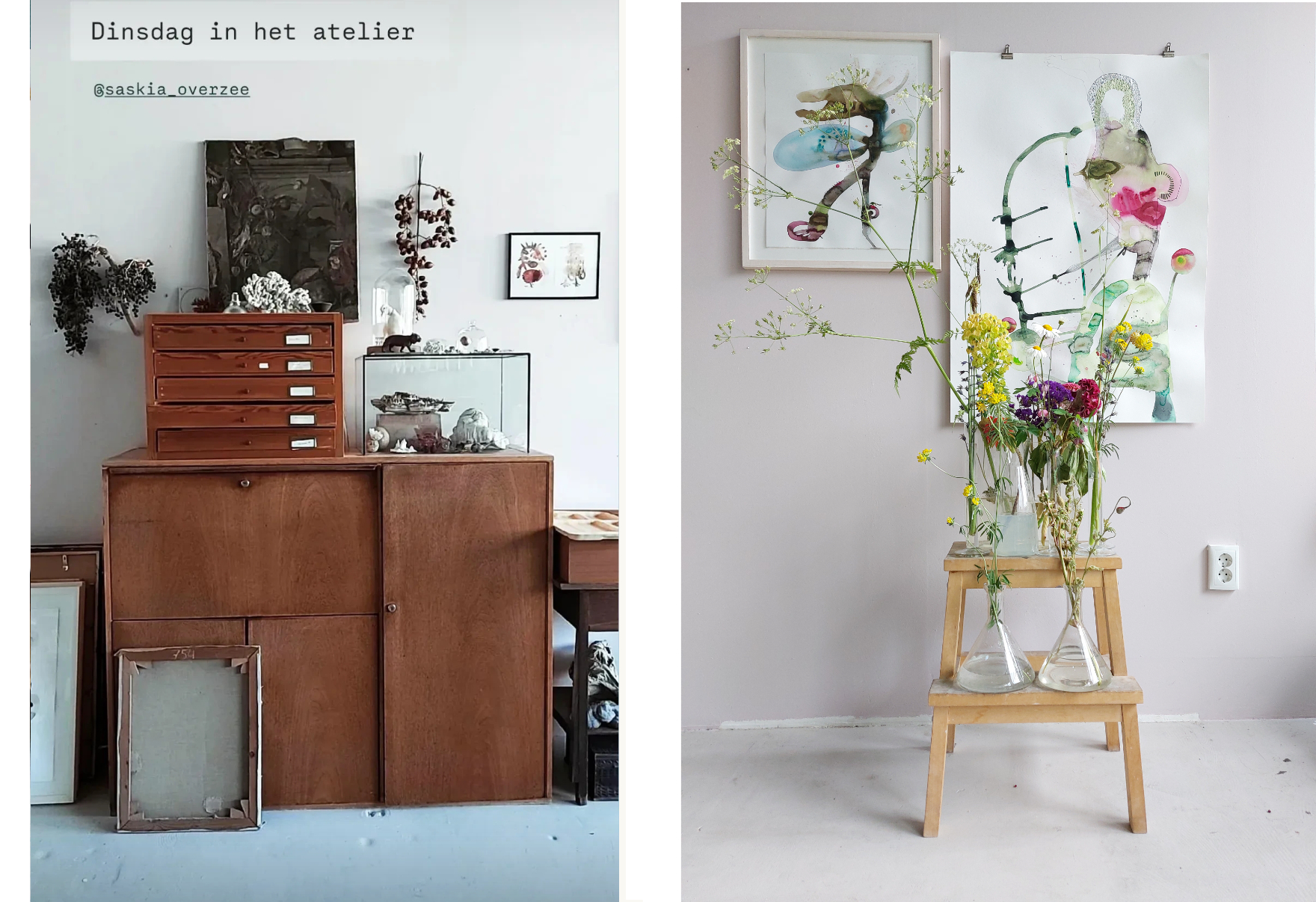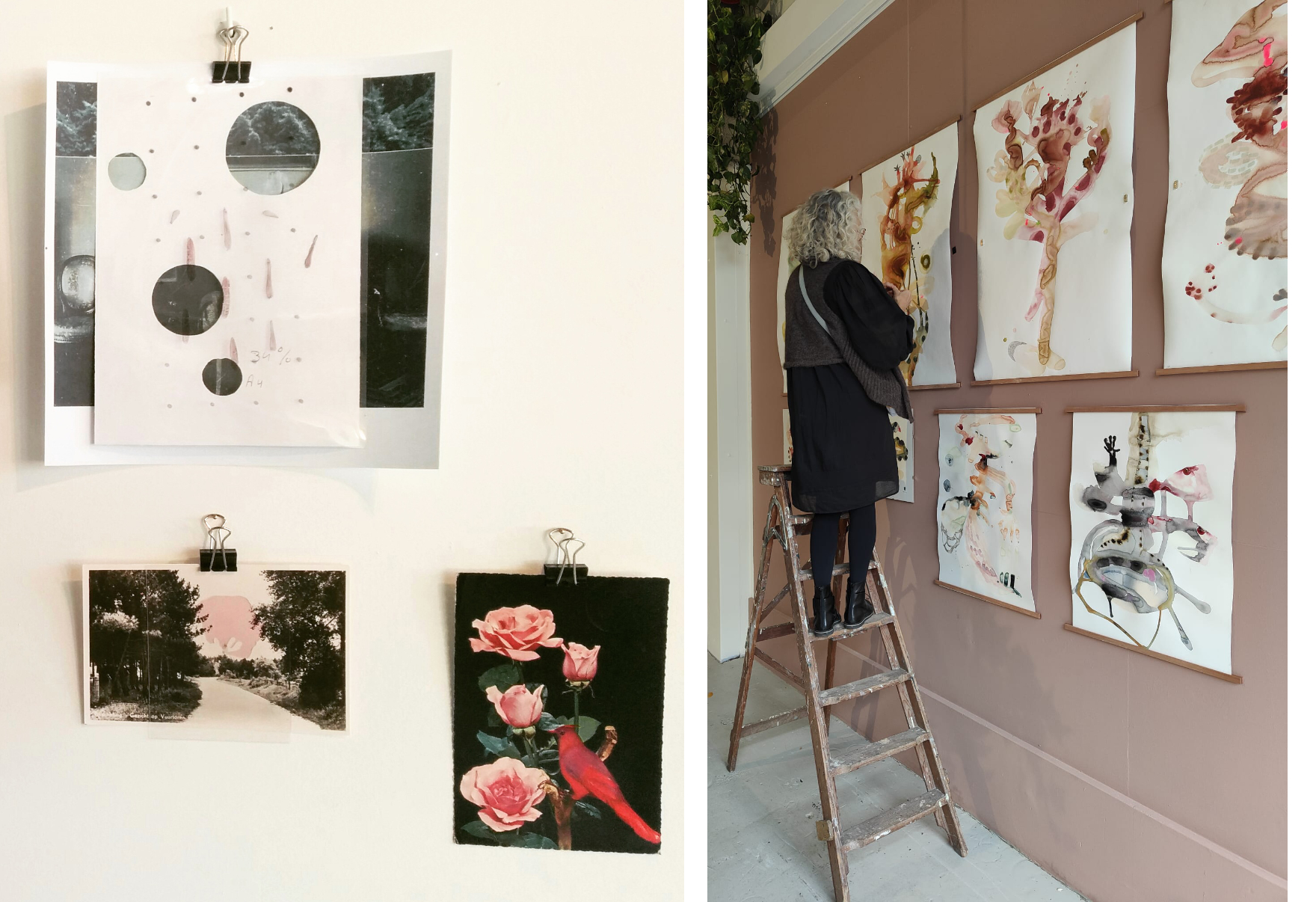 Alle werken zijn gemaakt met acrylinkt, pen, potlood en krijt op zwaar papier waar een groot percentage katoen in zit. Dit maakt dat de inkt prachtig vloeit.